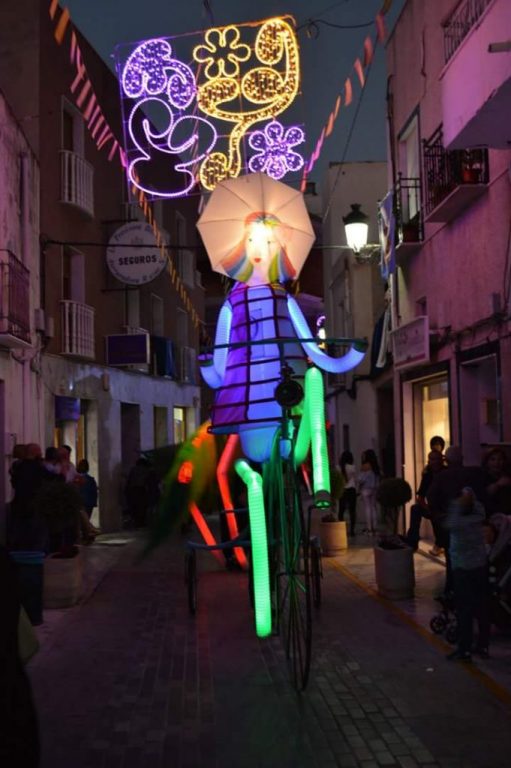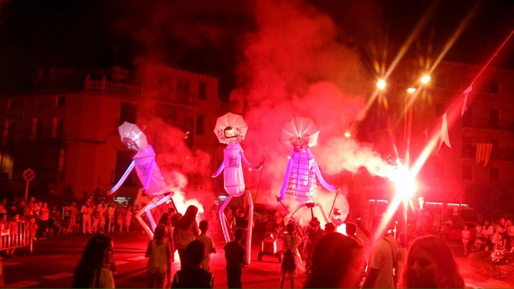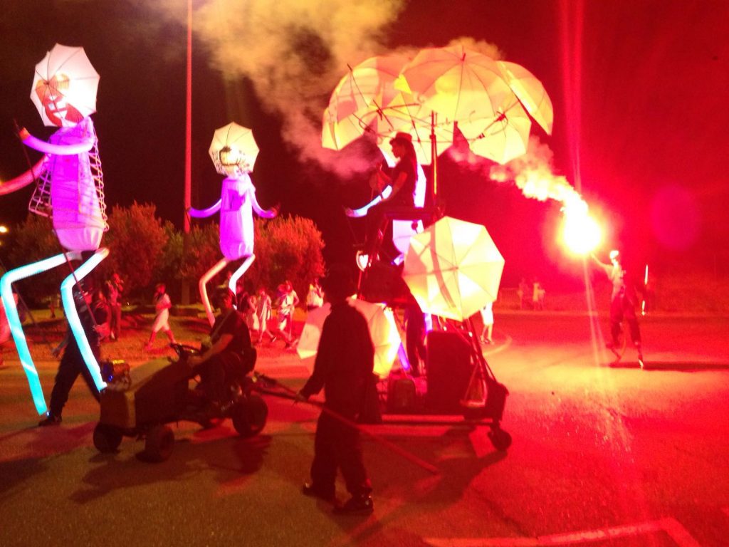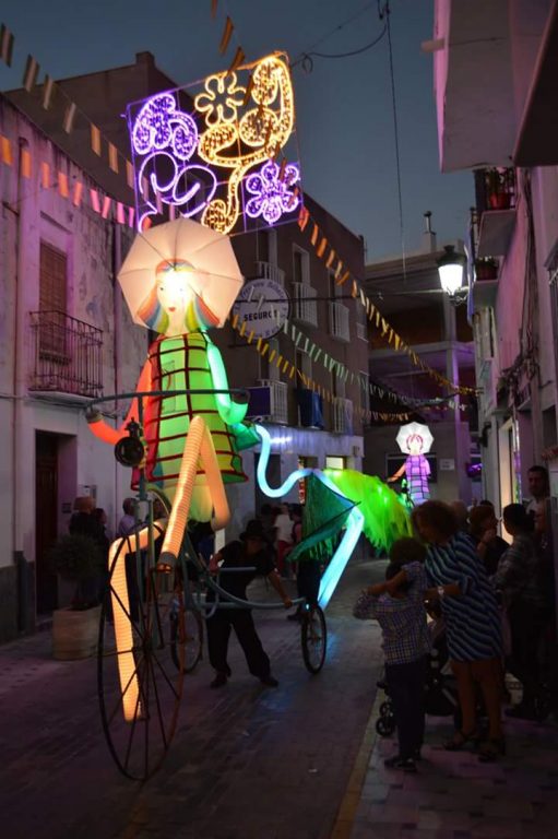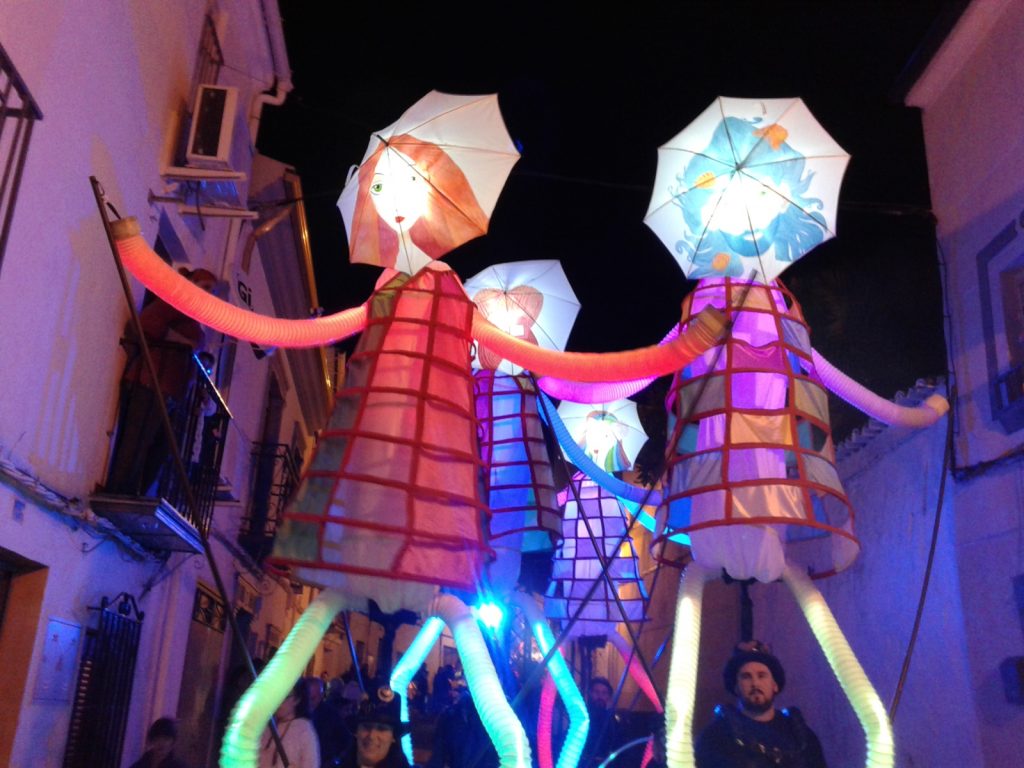 Pasacalles nocturno, en el que diversas marionetas gigantes pasean y se mueven coreográficamente al son de la música.