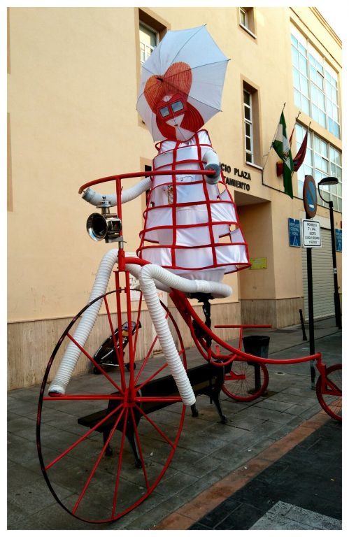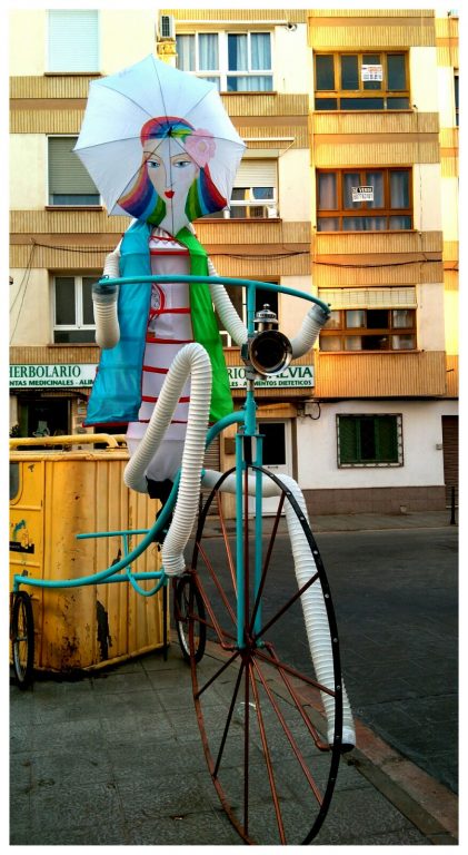 Figuras de diferentes formatos, como gigantes a pie, en velocípedos y pájaros. Todas las marionetas distintas entre si, con rasgos y colores diferenciados.